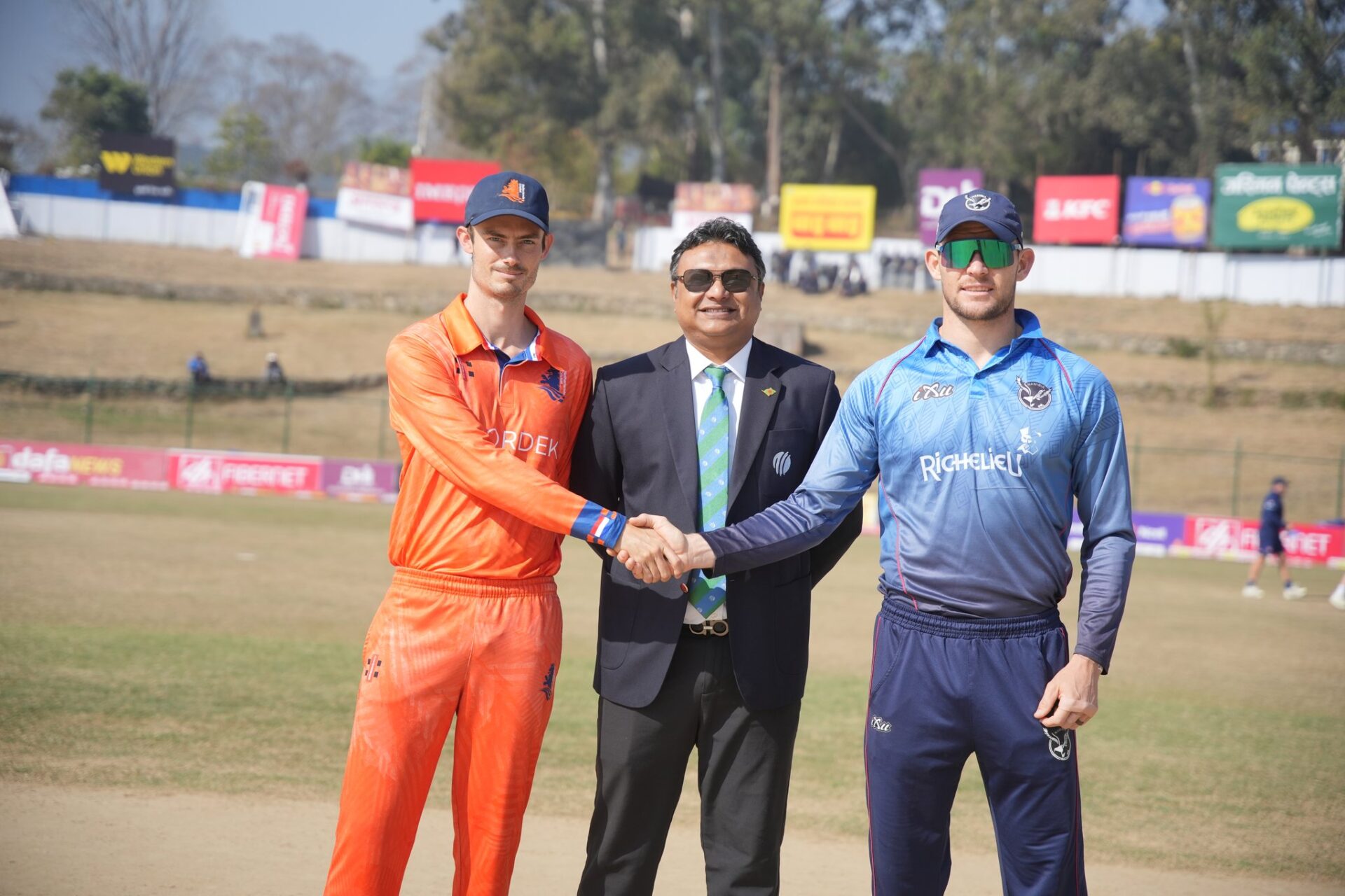 Namibia completed their opening League 2 skirmish with a third victory at Tribhuvan University on Friday, beating the Netherlands by 24 runs in a hard-fought duel and ensuring that they will end the initial series at the top of the table.
