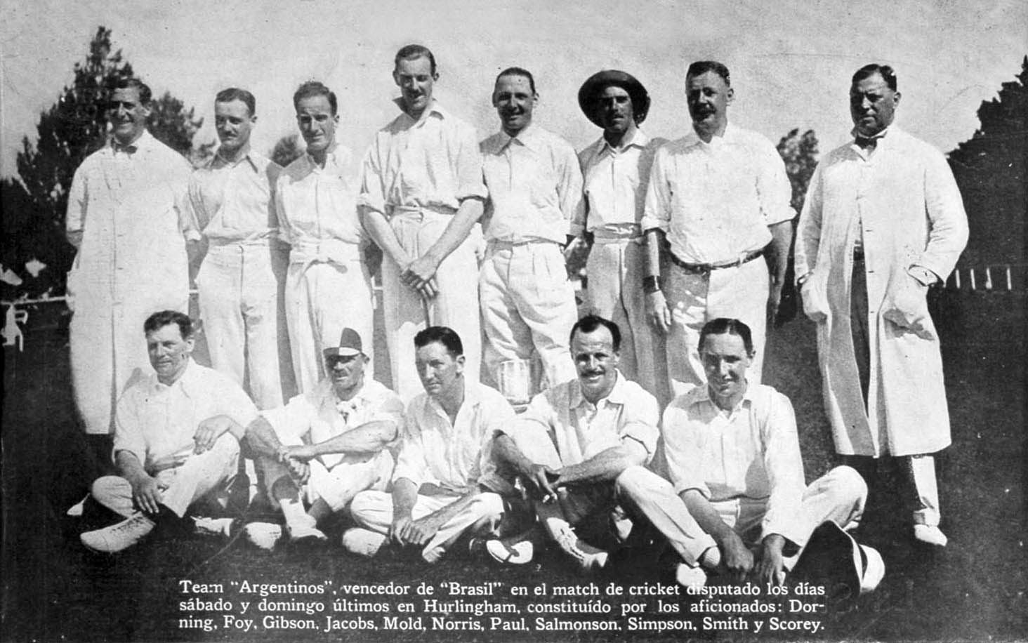 The Argentines won the series 2-nil, with Hutchinson Smyth making 300 runs at an average of 60.00, including 129 in the final, drawn game, and Foy the leading wicket-taker with 21 wickets at 10.90.
