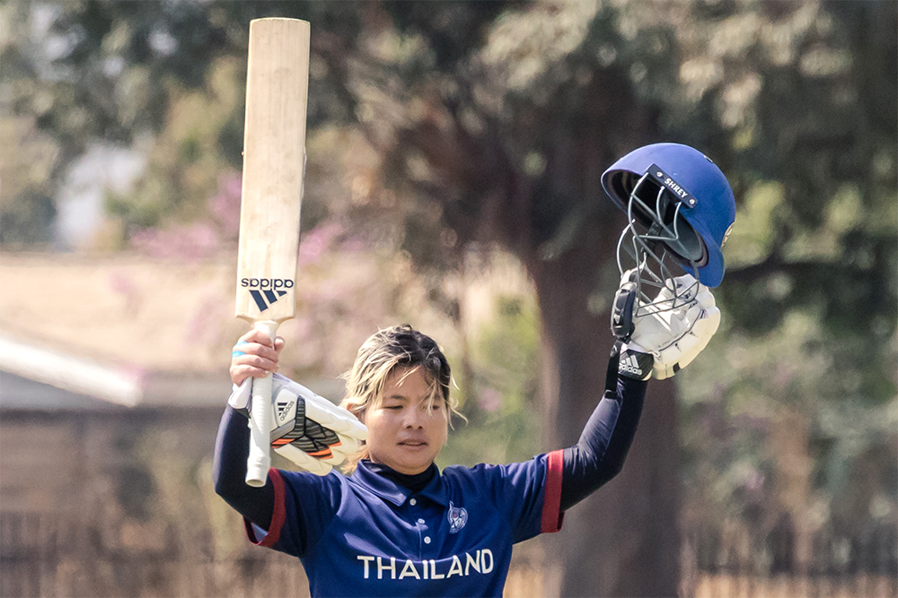 ‘A brilliant knock under significant pressure,’ Thailand’s Shan Kader told Emerging Cricket, and only the second international hundred by a Thai woman cricketer after Tippoch’s century against Singapore more than a decade ago.