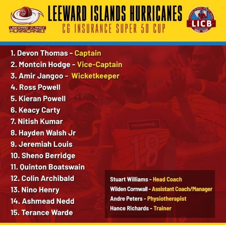 The Hurricanes squad will be led by former West Indian International Devon Thomas, while Leeward Islands stalwart Montcin Hodge will serve as the team’s vice-captain. Another notable inclusion in the group is West Indies U19 international Ashmead Nedd who impressed during the 2020 edition of the Under-19 World Cup with eleven wickets in six matches.